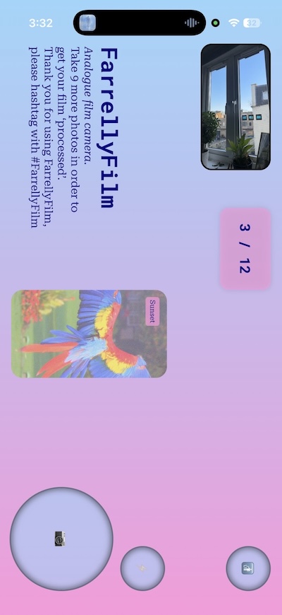 In this instance, I fell on the side of ease. I set the limit for photos to be at 12. As it's a third of 36 and a less daunting amount of photos/effort required to get users their first roll of film. It also opens the door to adding different film lengths in the future. Perhaps a user could make their own choice between 12, 24, or 36 length film?