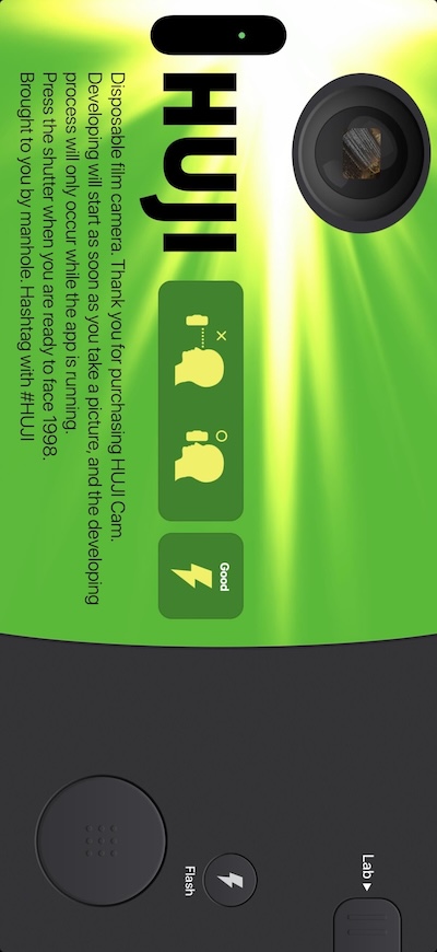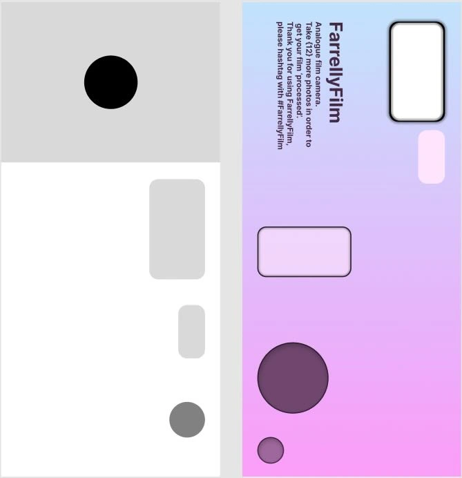 HujiFilm (a similar camera app that has a beautifully interesting filter on all it's photos) was an inspiration here. As they too opted to have their camera presented in landscape mode. They seemed to have navigated the situation by adjusting all text and graphics to the orientation, without actually requiring a user to physically put their phone in landscape mode. That's smart for a few reasons, firstly aesthetically it's more realistic and secondly dealing with devices that have their orientation locked would necessitate displaying a portrait version for those users. All while impacting the aesthetic and realism at play.